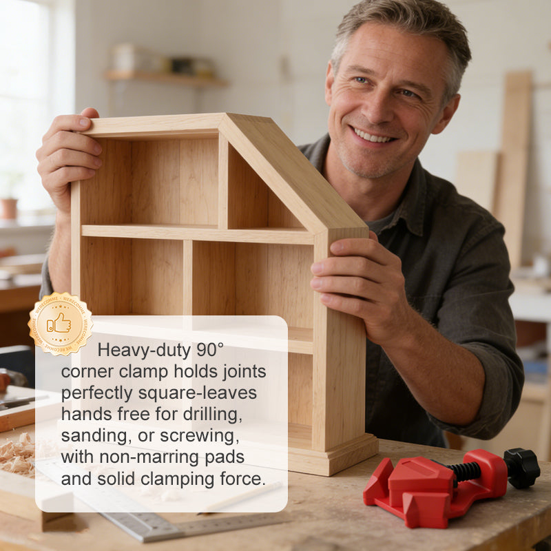 PEŁNY KĄT 90 STOPNI – Zapewnia idealne styki pod kątem prostym, aby osiągnąć profesjonalną jakość w swoich projektach stolarskich – od ramek obrazów po szafki. Za każdym razem tworzy perfekcyjnie wyrównane narożniki, oszczędzając czas na regulacjach i przeróbkach.