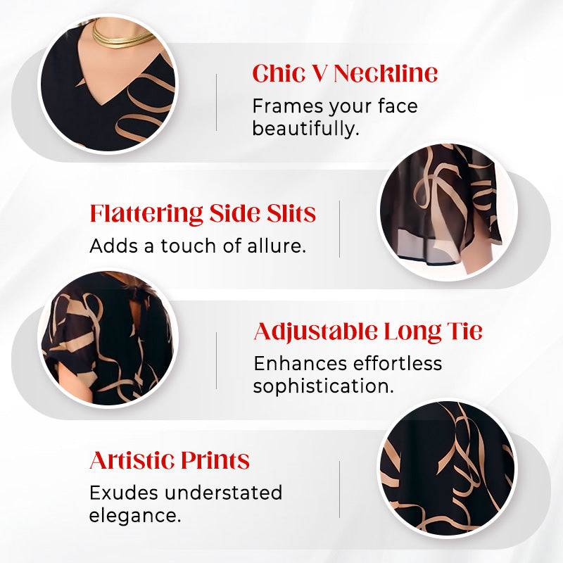 đ⨠Zwiewna sukienka maxi z drukowanym wzorem i dekoltem w serek