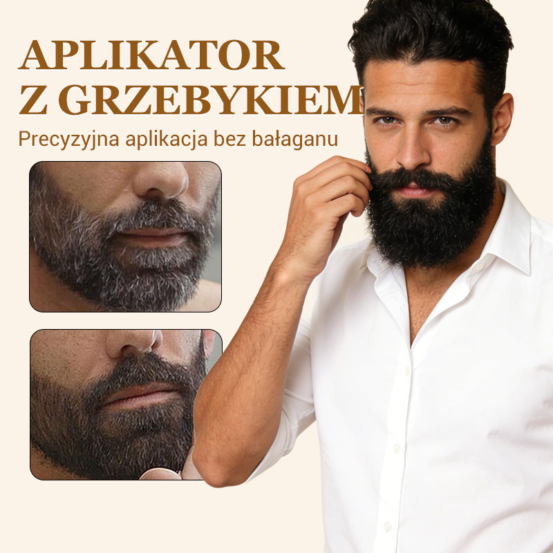 INNOWACYJNY APLIKATOR Z GRZEBYKIEM - Umożliwia łatwą aplikację koloru bezpośrednio na brodę. Specjalnie zaprojektowany grzebyk równomiernie rozprowadza produkt od nasady aż po końcówki, zapobiegając zlepianiu się włosów i zabrudzeniom. Naturalny efekt w zaledwie kilka minut.