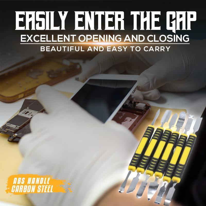 Design z podwójnym ostrzem i ostrymi końcówkami ułatwia wsuwanie się w małe szczeliny i ciasne przestrzenie, a niewielka głębokość nie uszkodzi wewnętrznych części. Zestaw sześciu narzędzi z 12 ostrzami na każdą sytuację naprawczą! Na wszystkie Twoje codzienne potrzeby.