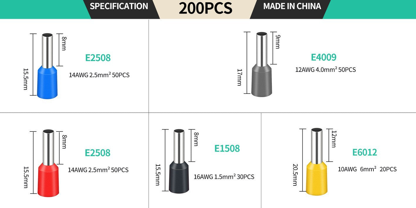 lub 200/300/400/800 * tuleje izolacyjne do końcówek kabli + narzędzie do zaciskania
